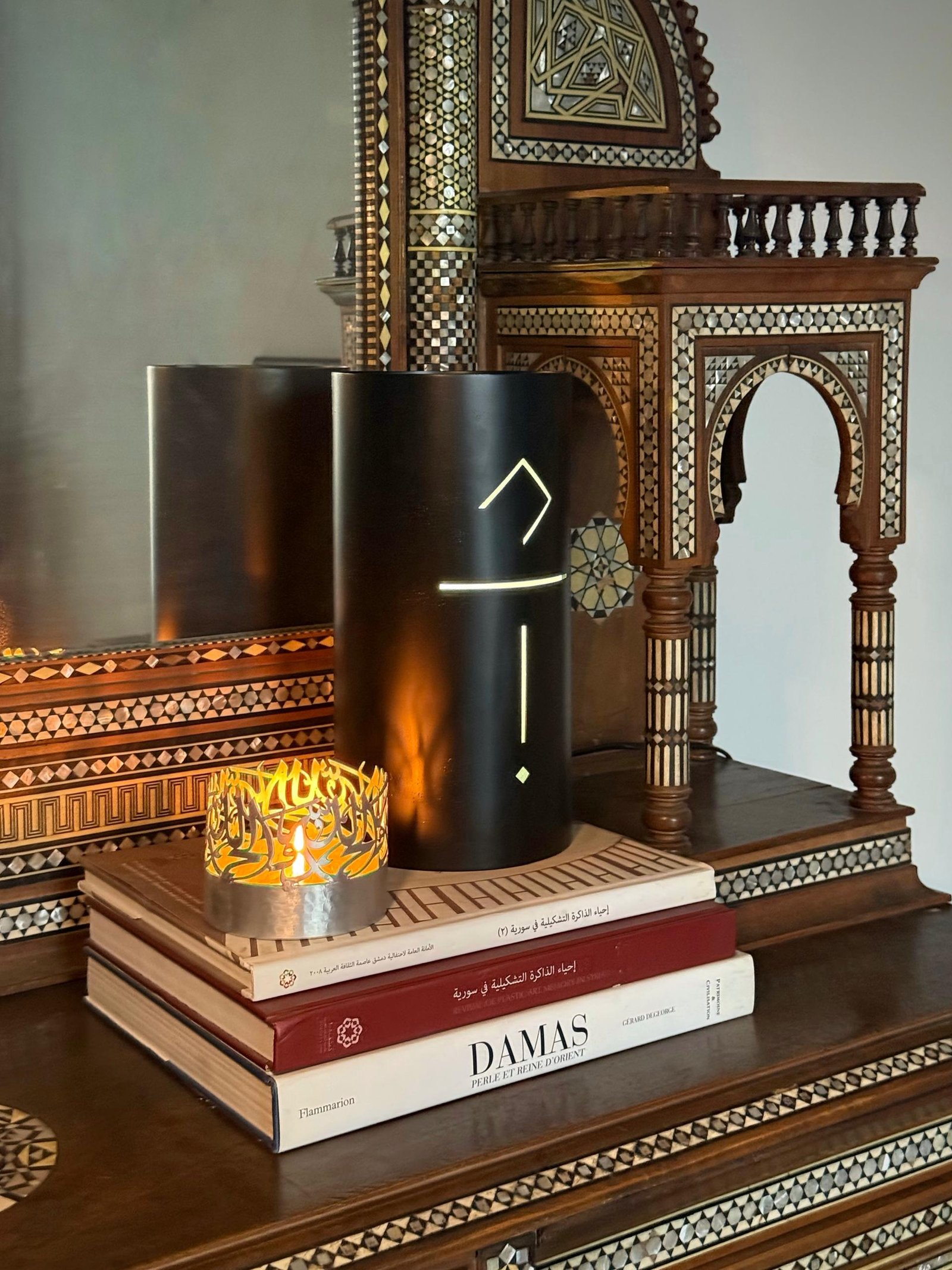 A calligraphy lamp created in collaboration with Qusai Alrifaai.