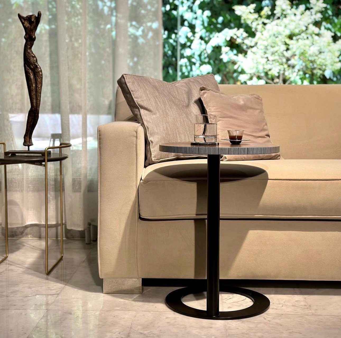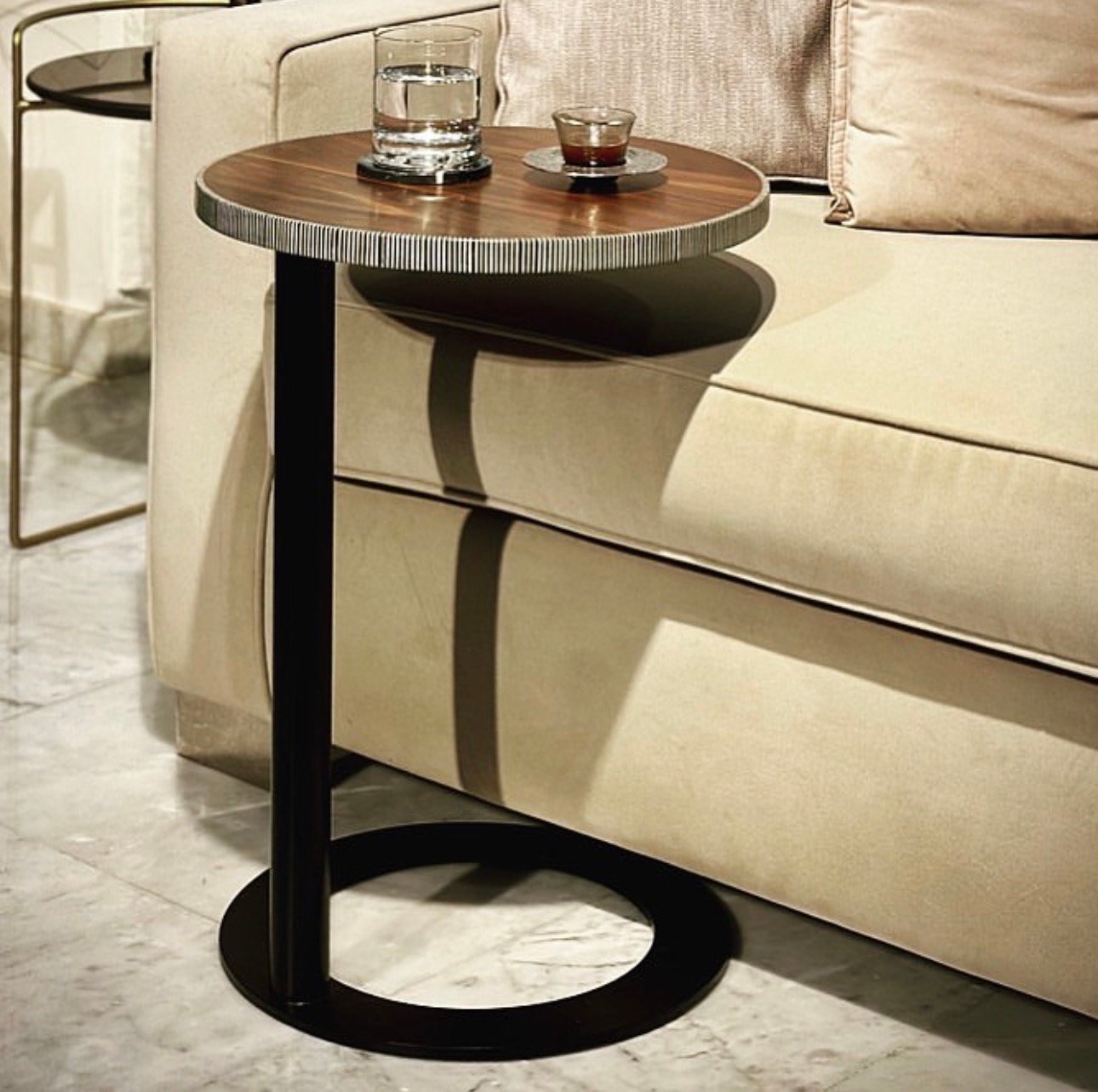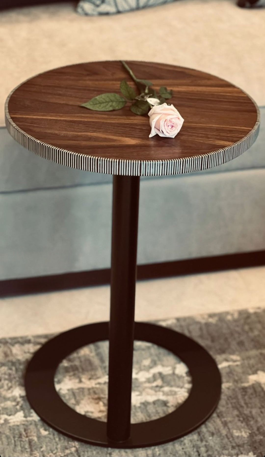 Crafted from solid walnut wood with finely handcrafted edge detailing, this side table is supported by a sleek laser-cut metal base that balances warmth and modern precision. Custom-made to order, it can be tailored in color, materials, and dimensions to suit any interior.