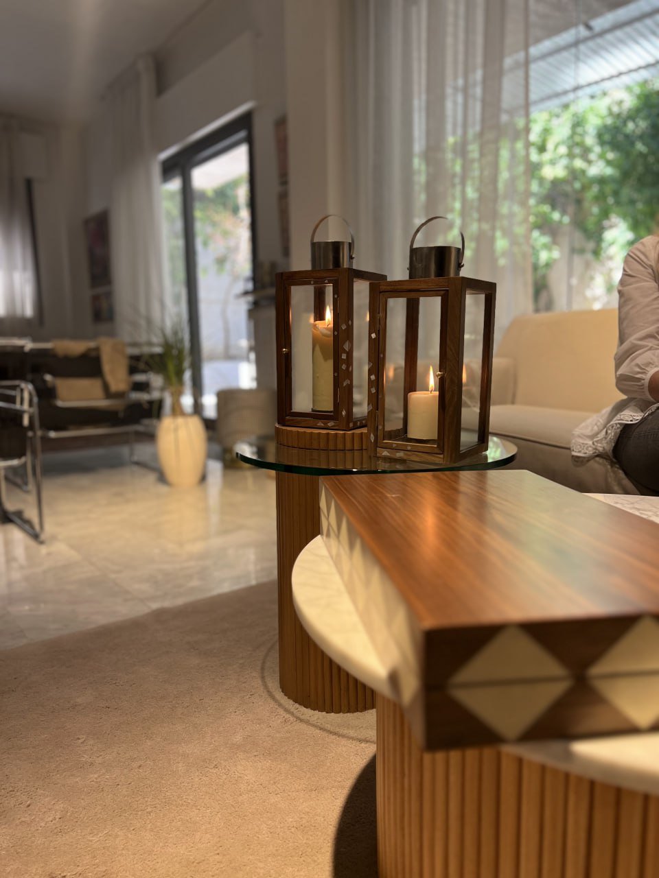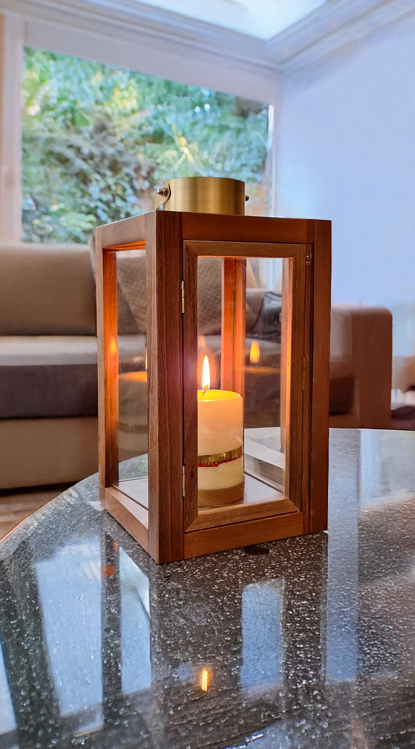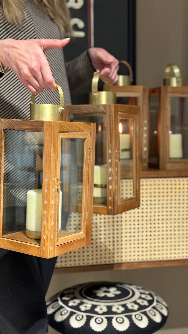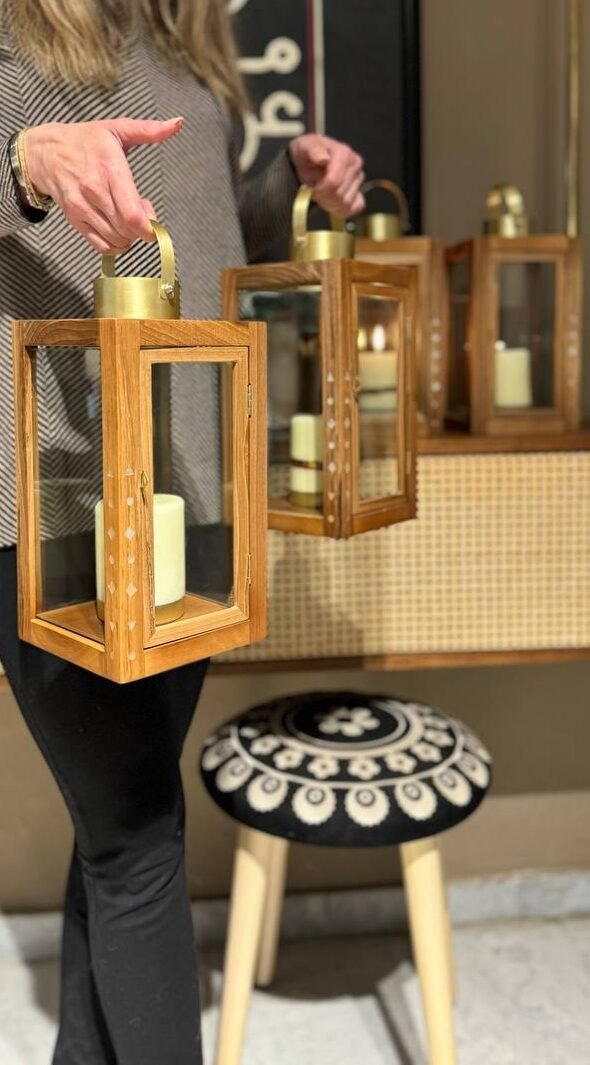 Candle Lantern made of wood and mother-of-pearl.
