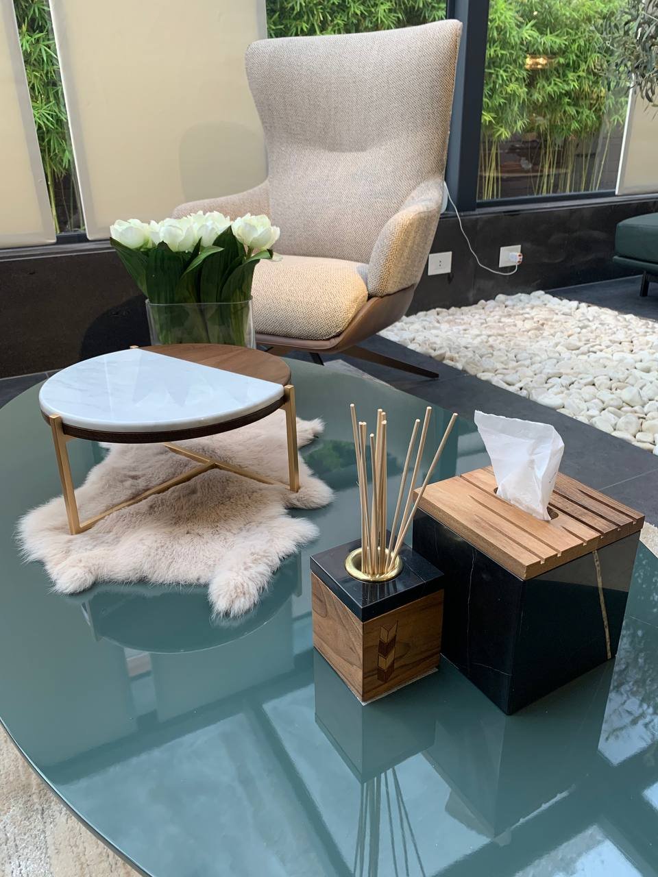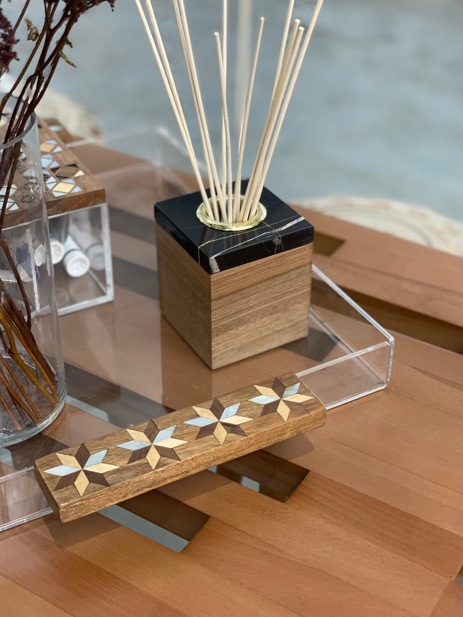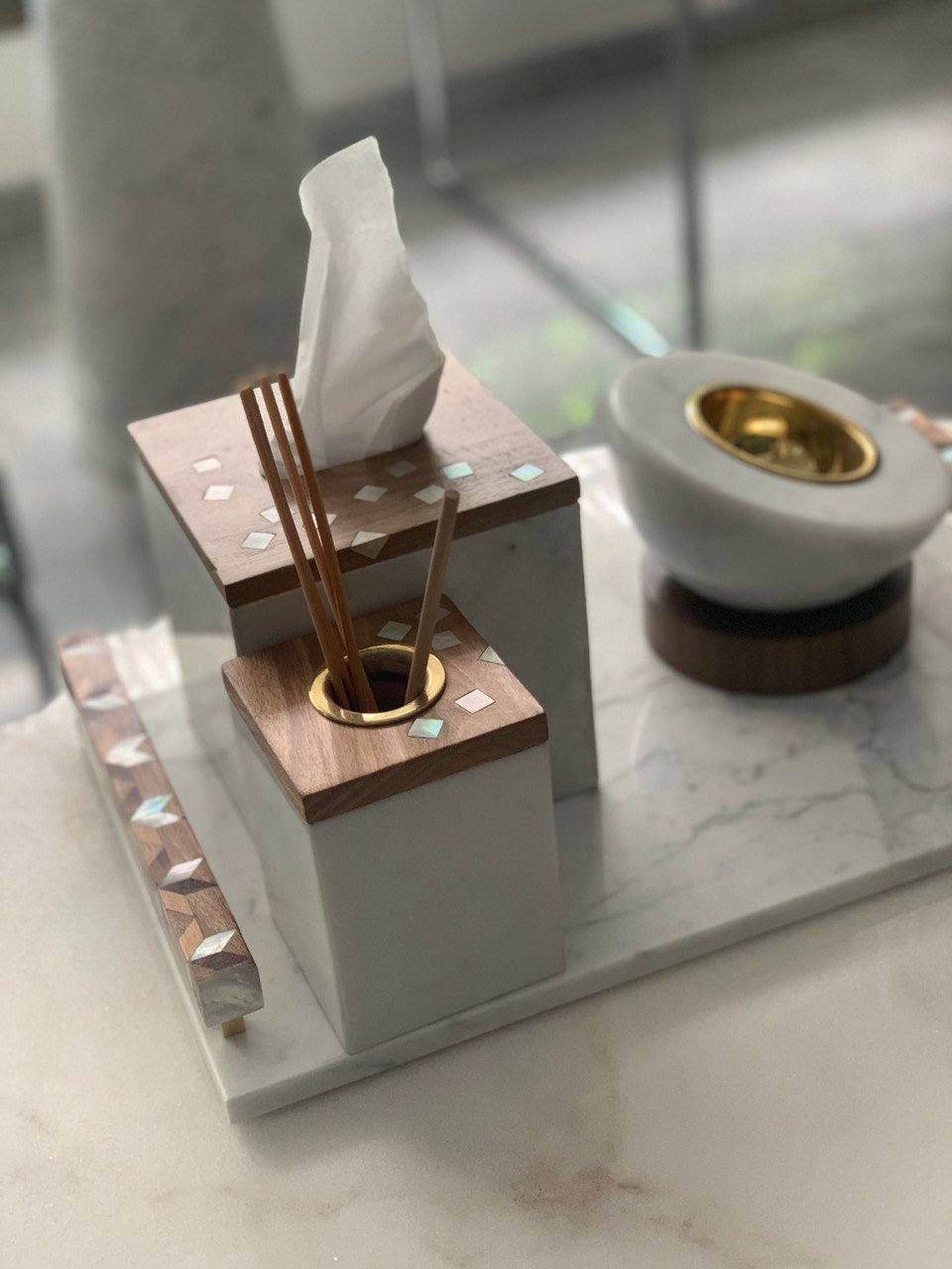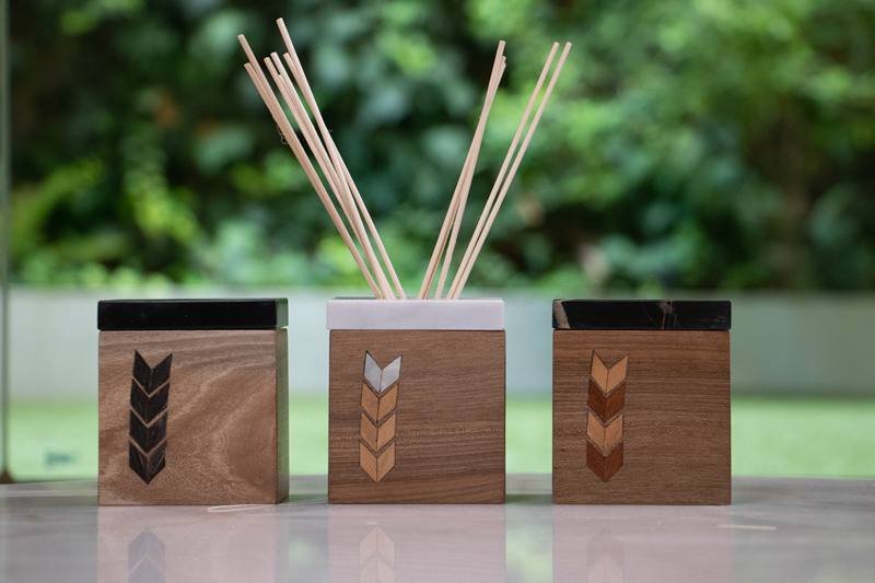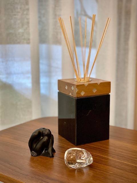 Marble diffuser box with wood cover.